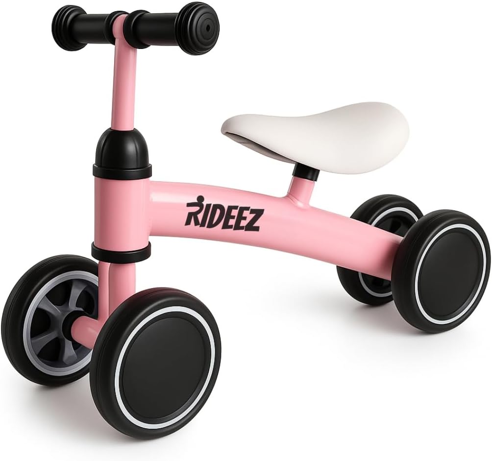 Bicicletas de equilibrio sin pedales (1–3 años) con 4 ruedas estables, llantas EVA y ajuste sin herramientas. Empieza a rodar en minutos.